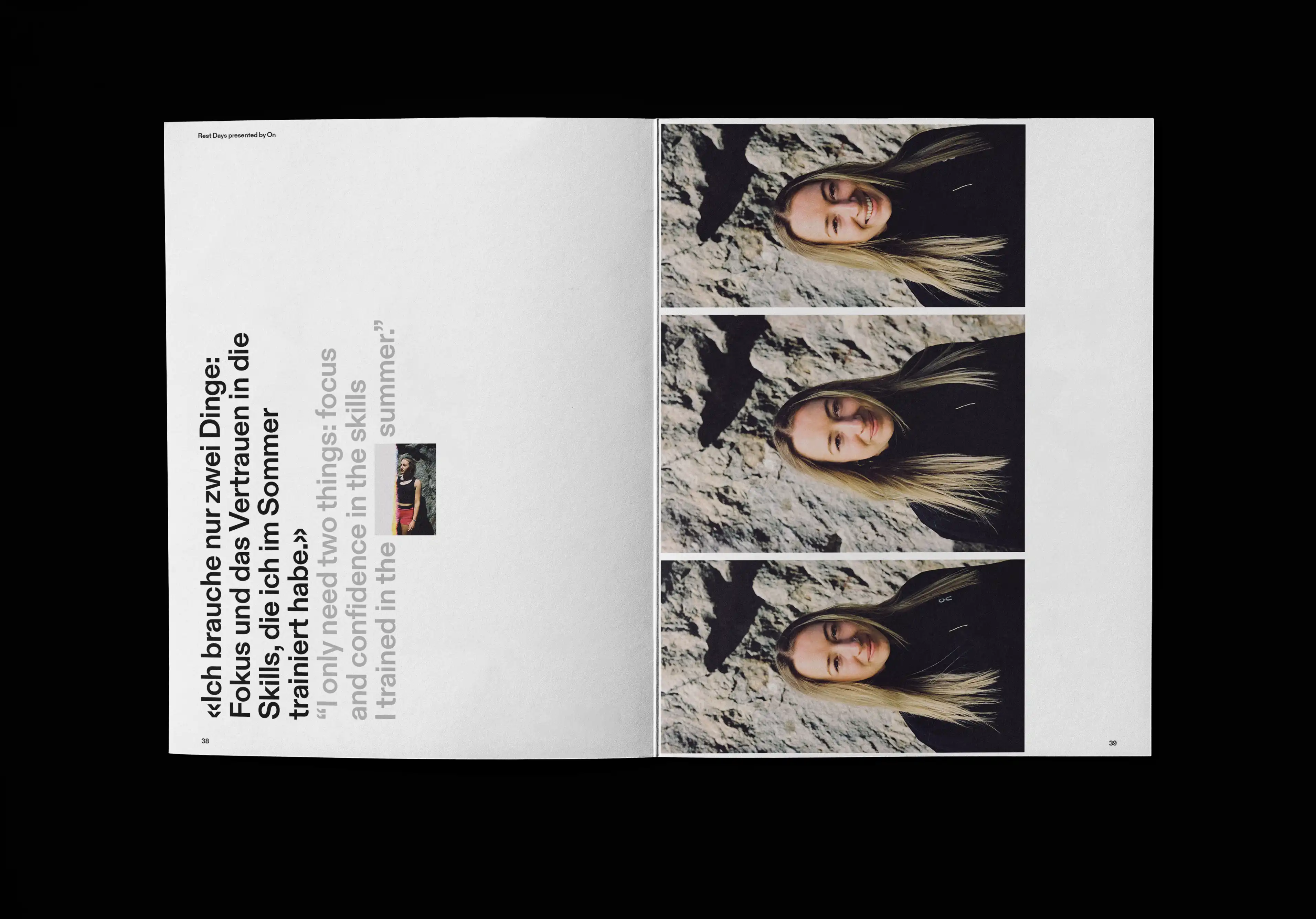 Ergänzend zur vierteiligen Serie mit GIGI und den Swiss-Ski-Athlet:innen durften wir für das On Store Opening ein besonderes Magazin gestalten. Darin erzählen die Sportler:innen in persönlichen Interviews von Motivation, Rückschlägen, Routinen und der Leidenschaft, die sie antreibt. Ein Printprodukt, das die Kampagne weiterführt und den Athlet:innen eine zusätzliche Bühne gibt. Das Magazin wurde als Schweizerbroschur mit Blindprägung auf dem Cover realisiert. Jedes der 400 Exemplare ist ein Unikat – einzeln nummeriert und mit höchster Sorgfalt gefertigt. Von der redaktionellen Idee über das Design bis zur finalen Umsetzung durften wir das Projekt vollständig begleiten.